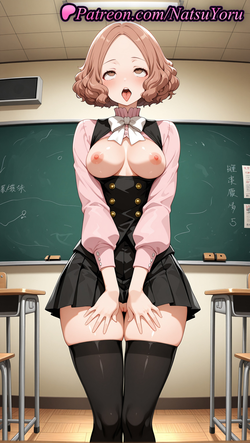 1girl 1girl 1girls 2025 ahegao ai ai_assisted ai_generated alternate_legwear anime anime_style ass_visible_through_thighs atlus big_breasts big_breasts black_legwear black_skirt black_thighhighs black_vest blonde_hair blouse blush bow bowtie breast_cutout breasts breasts_out brown_eyes brown_hair bust buttons chair chalkboard classroom clothing desk female_focus female_only forehead hands_on_own_thighs haru_okumura hentai high_quality high_res high_res high_resolution hypnosis indoors legs long_sleeves looking_at_viewer medium_breasts megami_tensei mind_control miniskirt natsuyoru nipples nipples_outside no_bra no_panties non-asian open_mouth parted_bangs patreon persona persona_5 persona_5_royal pink_shirt pink_sweater pleated_skirt pussy pussy pussy_juice rolling_eyes school_chair school_desk school_uniform shirt short_hair skindentation skirt solo_female stable_diffusion standing stockings thigh_gap thighs tiles tongue tongue_out uncensored uncensored_nipples vest voluptuous voluptuous_female white_bow white_bowtie