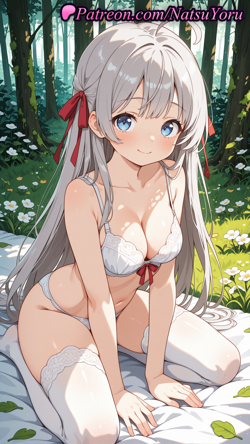 1girl 1girl 1girls 2025 ahoge ai ai_assisted ai_generated alisa_mikhailovna_kujou alya anime anime_style asian bangs bare_arms bare_shoulders between_legs big_breasts blue_eyes blush bow bow_bra bra breasts bust cleavage closed_mouth clothing collarbone day female_focus female_only flower forest grass grey_hair hair_ribbon hand_between_legs hentai high_quality high_res high_res high_resolution lace_trim leaf lingerie long_hair looking_at_viewer medium_breasts natsuyoru nature navel no_shoes outside panties panties patreon red_ribbon ribbon roshidere seiza silver_hair sitting smile solo_female stable_diffusion stockings stomach string_panties thighs tokidoki_bosotto_russian_de_dereru_tonari_no_alya-san tree underwear underwear_only very_long_hair voluptuous voluptuous_female wariza white_bra white_hair white_legwear white_panties white_thighhighs