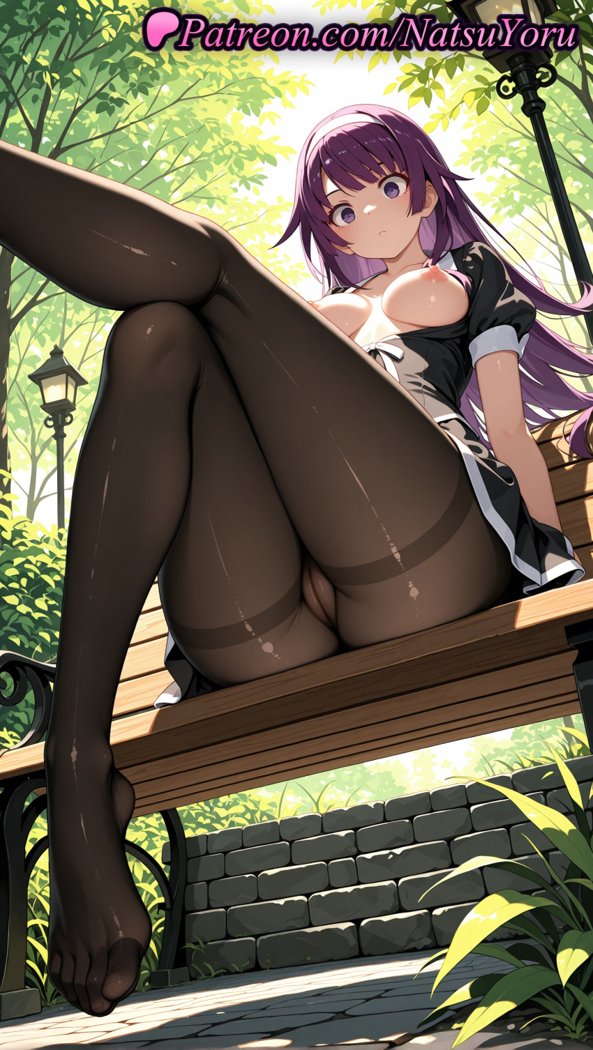 1girl 1girl 1girls 2025 ai ai_assisted ai_generated alternate_costume anime anime_style arm_support ass bakemonogatari bangs bench big_breasts big_breasts black_dress black_legwear black_pantyhose blush breasts breasts_apart breasts_out brown_pantyhose bush bust cameltoe closed_mouth collarbone crossed_legs day dress dutch_angle eyelashes feet female_focus female_only foot_fetish foot_out_of_frame foreshortening from_below hairband hentai high_quality high_res high_res high_resolution juicy_butt lamppost leaning_back leg_lift legs legwear long_hair looking_at_viewer looking_down maid maid_uniform medium_breasts monogatari_(series) natsuyoru nipples nipples_outside no_bra no_panties no_shoes non-asian on_bench open_clothes outside pantyhose park_bench patreon public_indecency puffy_short_sleeves puffy_sleeves purple_eyes purple_hair pussy pussy senjougahara_hitagi shiny shiny_skin short_sleeves sidelocks sitting sitting_on_bench soles solo_female stable_diffusion thighband_pantyhose thighs toes tree uncensored_nipples underwear upskirt voluptuous voluptuous_female white_bow white_hairband
